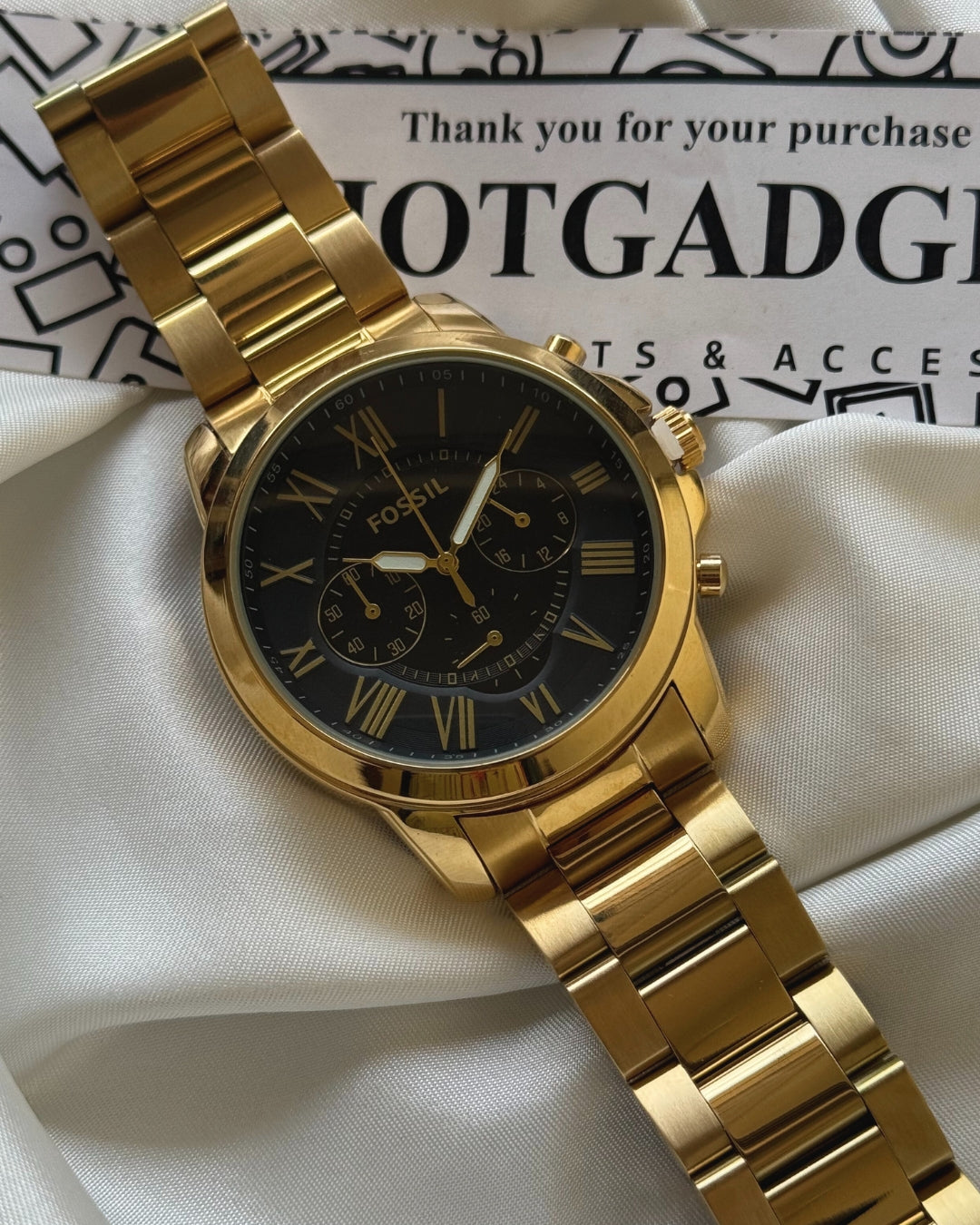 Cette montre Fossil se distingue par un design élégant et affirmé, associant un boîtier en acier doré à un cadran noir contrasté. Cette combinaison intemporelle apporte une présence marquée au poignet tout en conservant une lecture claire et structurée de l’heure.