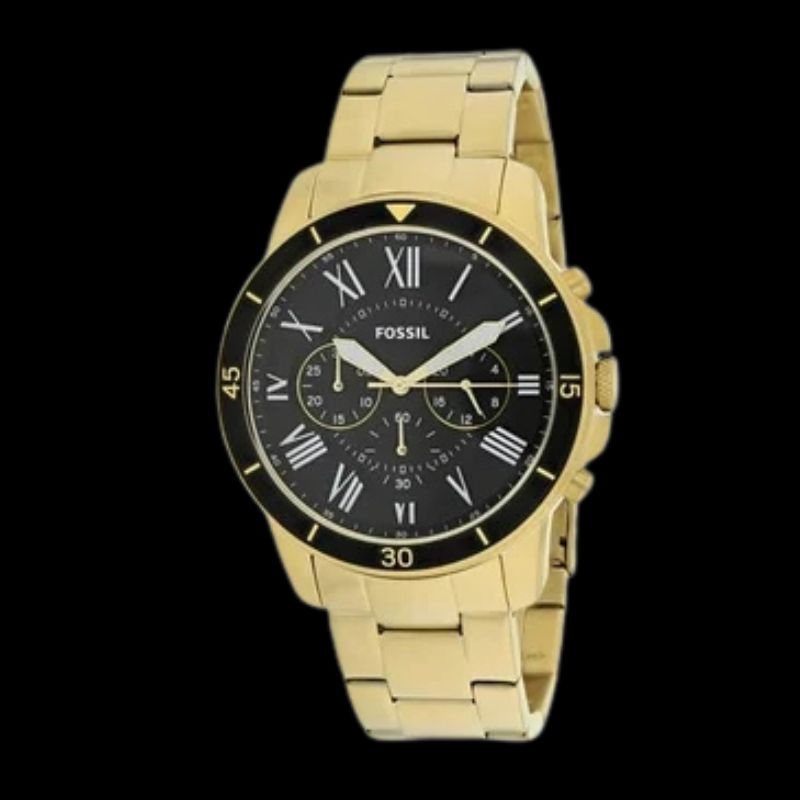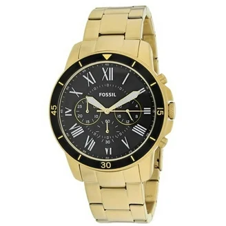 Fossil Grant – Montre Fossil Homme Chronographe Acier Doré Cadran Noir Bracelet à Maillons Doré